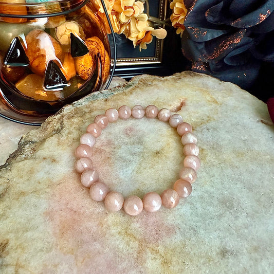 8mm Peach Moonstone Bracelet, Healing & Anxiety, Emotional Balance