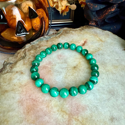 8mm Malachite Bracelet, Rare Powerful Crystal, Protective Stone