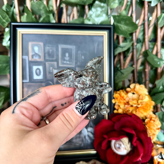 Black Obsidian Or Yooperlite Carved Gizmo, Gremlins, Negativity Crystal