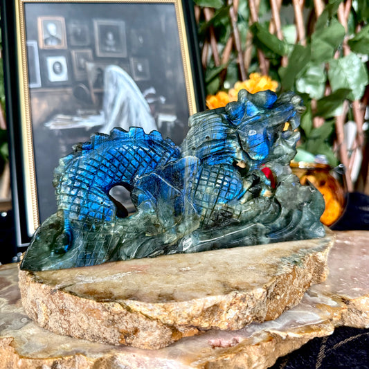 High-Flash Labradorite Carved Dragon, Blue Flash, Intuition Crystal