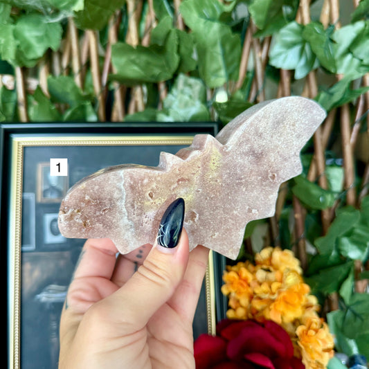 Pink Amethyst Carved Bat, Heart Chakra, New Beginnings Stone