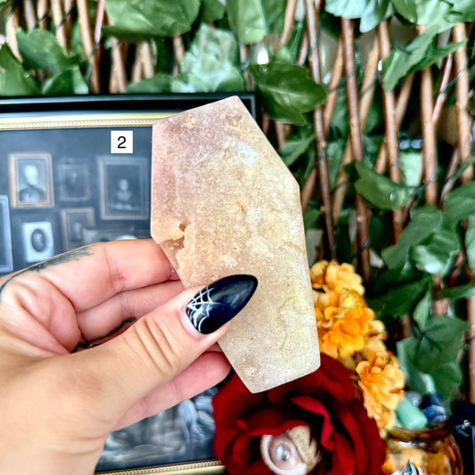 Druzy Pink Amethyst Carved Coffin, Heart Chakra, New Beginnings Stone