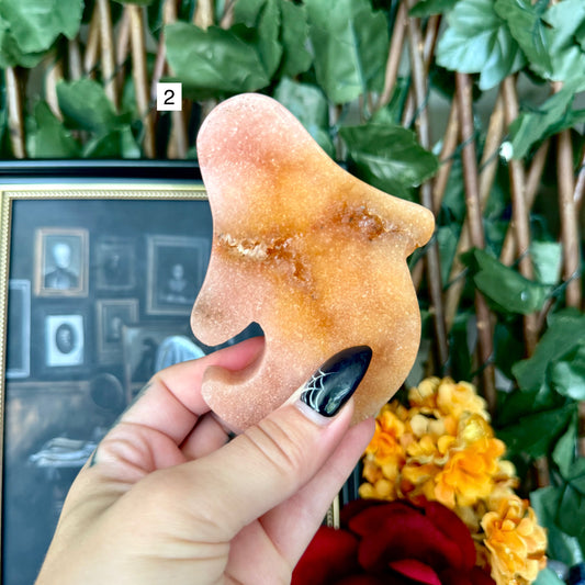 Druzy Pink Amethyst Carved Pumpkin, Heart Chakra, New Beginnings Stone