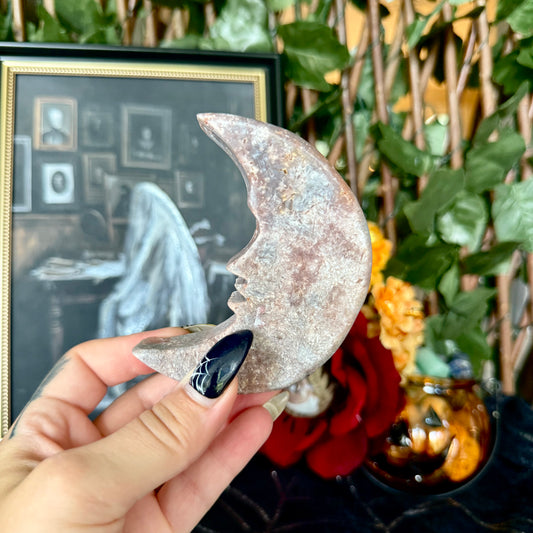Druzy Pink Amethyst Crescent Moon, Heart Chakra, New Beginnings Stone