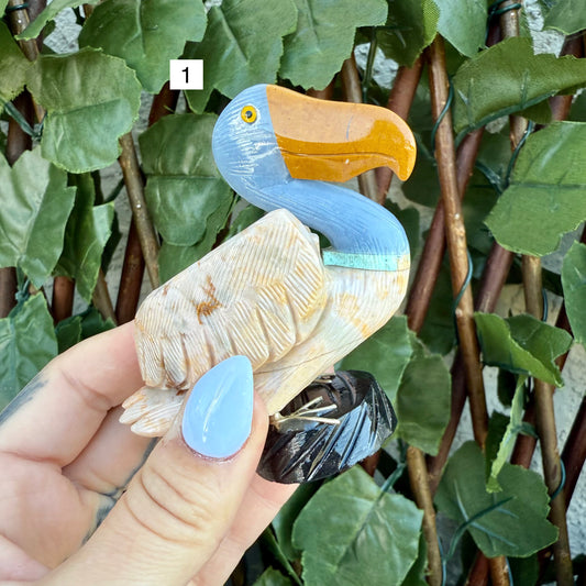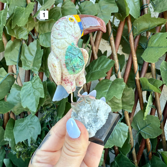 Colorful Carved Toucan, Assorted Crystals, Choose Your Own!
