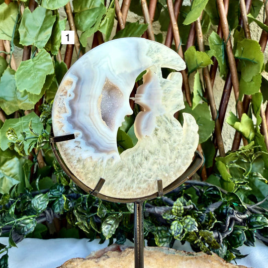 Druzy Blue Agate Carved Cat With Stand, Grounding, Calming & Soothing