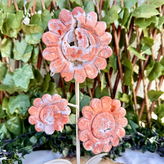 Large 3 Piece Druzy Pink Agate Flowers With Stand, Self-Love, Emotional Healing