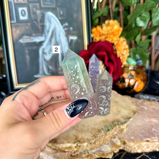 Moon & Star Rainbow Fluorite Tower, Detoxifying, Aura Cleansing