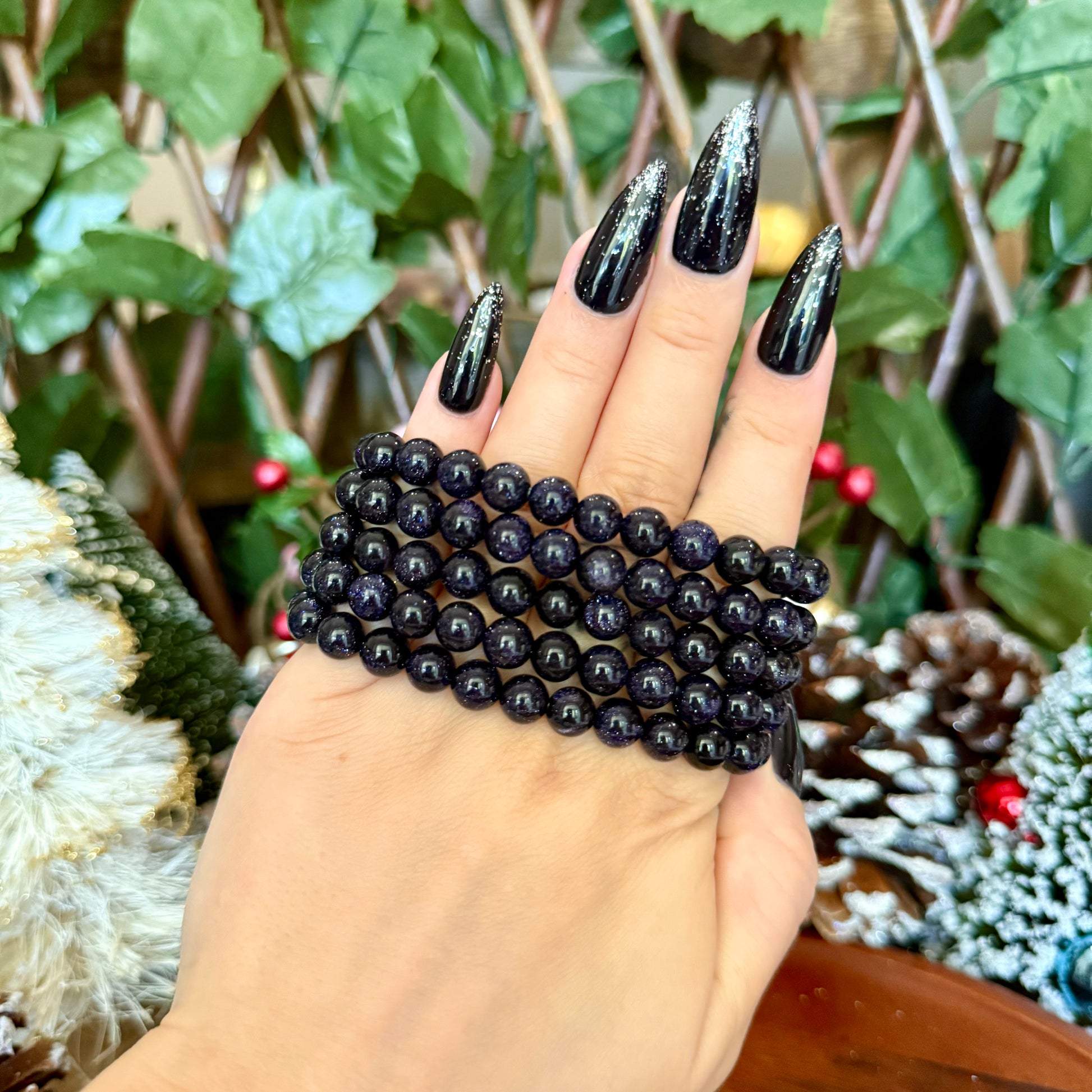 Bracelets are approximately 7.5", made with 8mm Blue Sandstone beads.