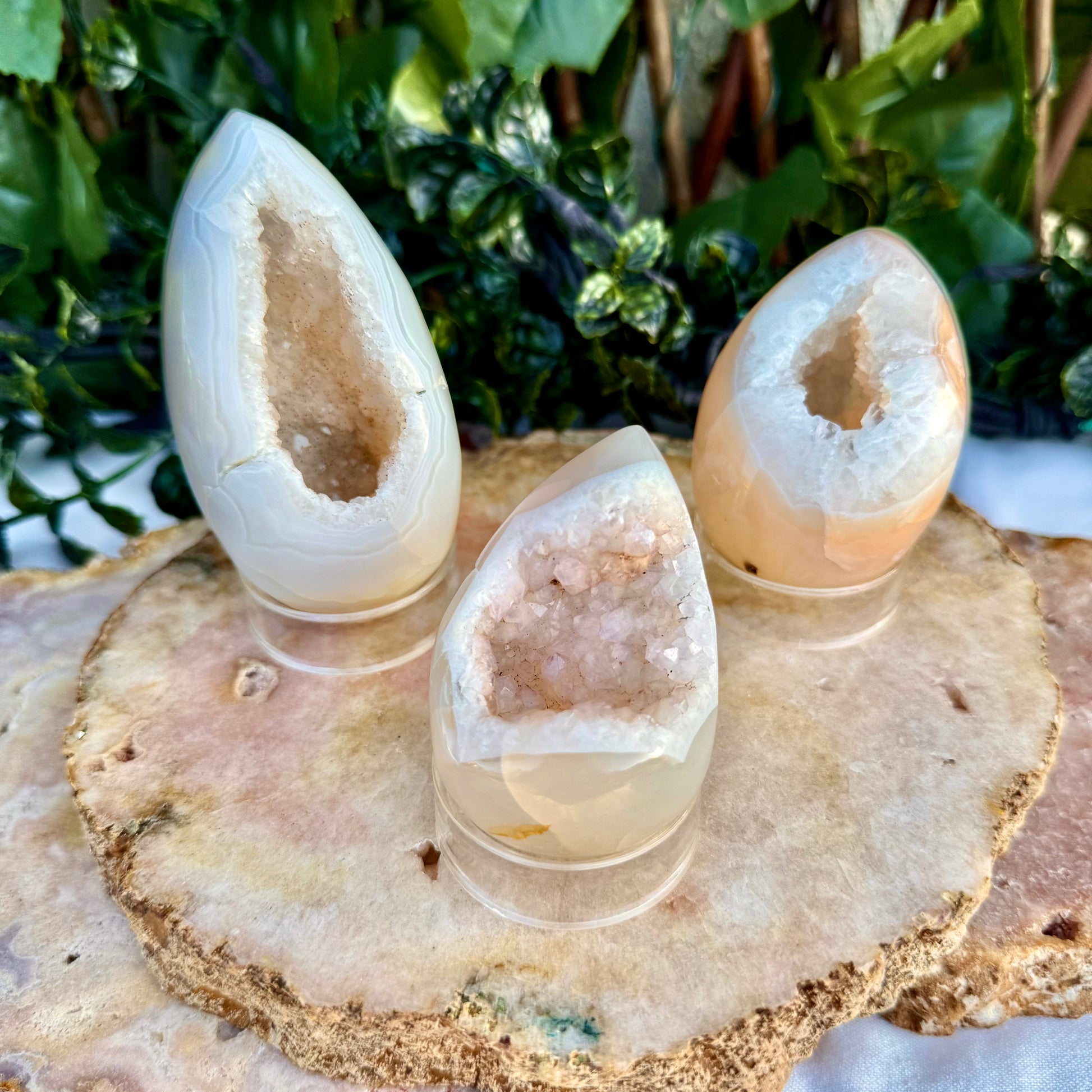Druzy Peach Agate Egg, Grounding, Calming & Soothing