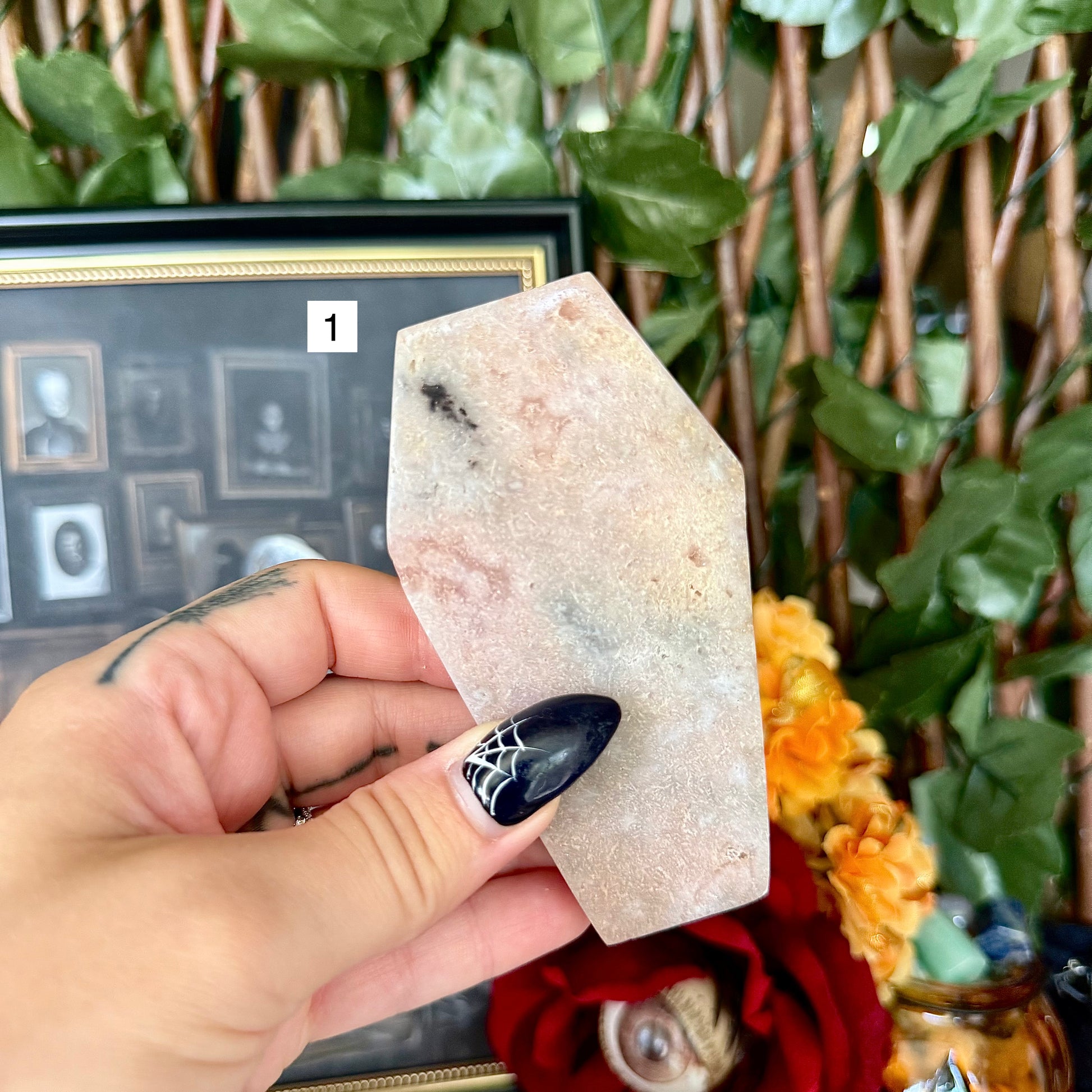 Druzy Pink Amethyst Carved Coffin, Heart Chakra, New Beginnings Stone