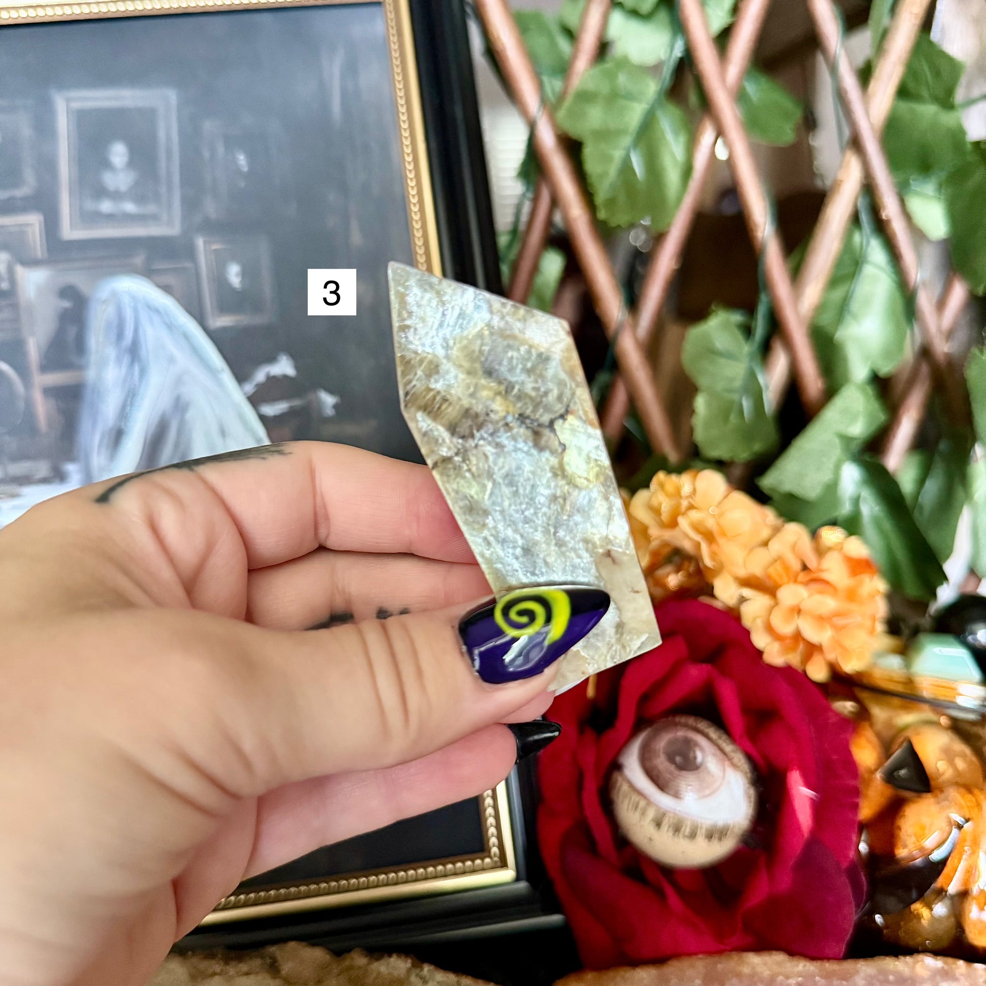 Each stone in my shop is hand-selected and intuitively chosen by me. Please keep in mind that each stone is a natural element from Mother Earth and you are purchasing a natural piece from her with its own personality, energy, and beautiful imperfections. Each piece is will vary in shape and size.