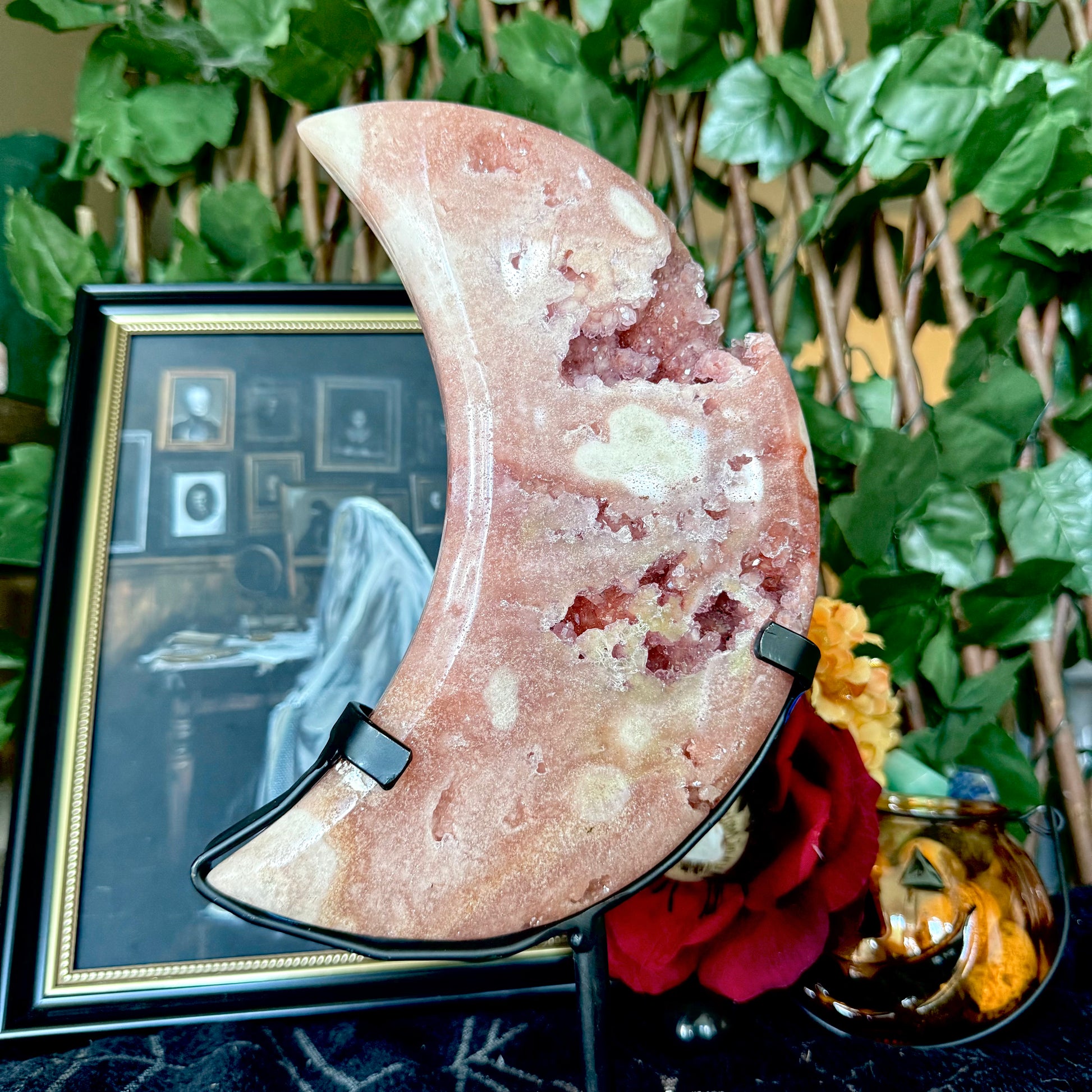Large Druzy Pink Amethyst Crescent Moon, Heart Chakra, New Beginnings Stone